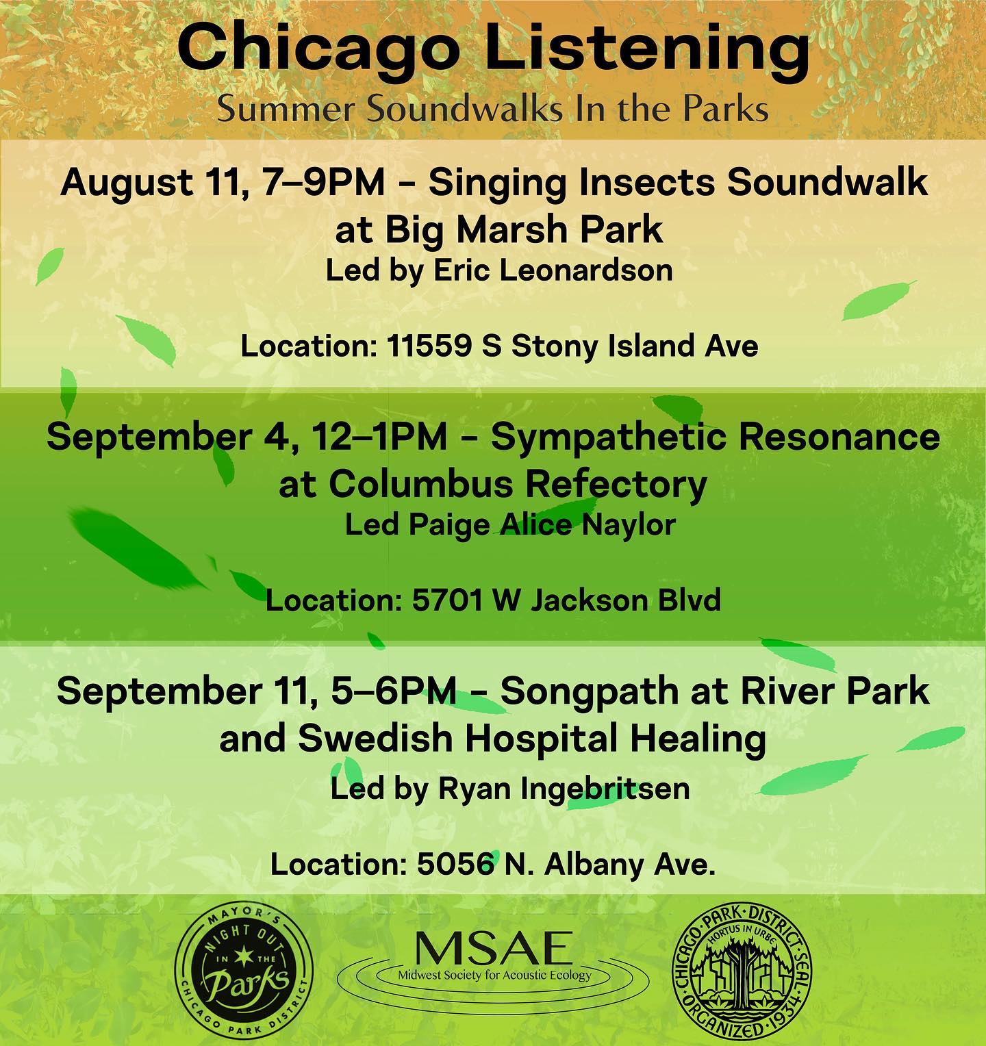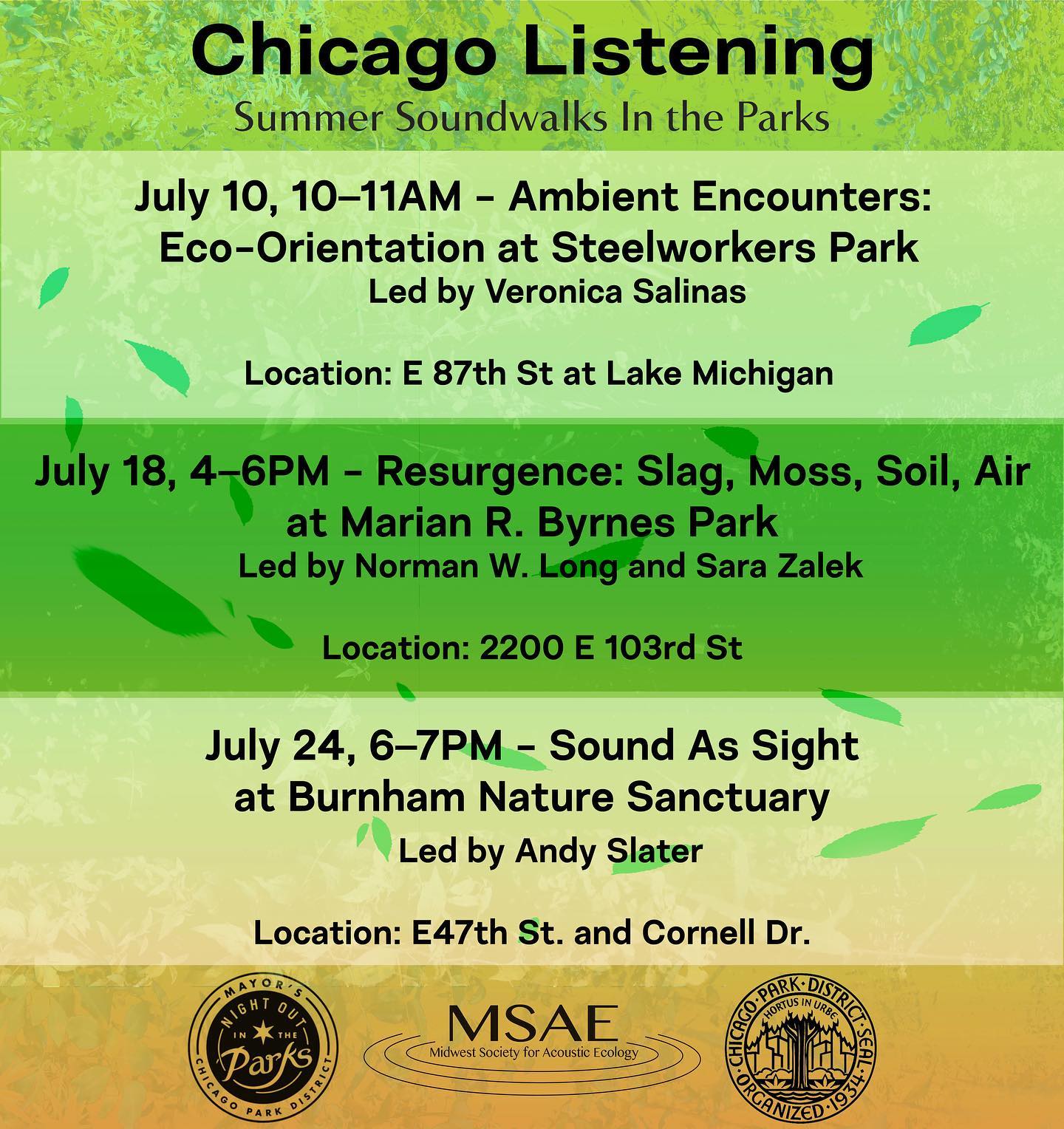 I hope this message finds you well. Thank you all for your support. Sunday July 18 is World Listening Day. A day dedicated to connecting and understanding our environment through listening. Sara Zalek and I will lead a soundwalk at Marian R. Byrnes Park in honor of World Listening Day. Please tune in to World Listening Day - a 24 hour broadcast produced by The World Listening Project in association with WGXC Wave Farm, NAISA Radio and the World Forum for Acoustic Ecology. Tune in here: